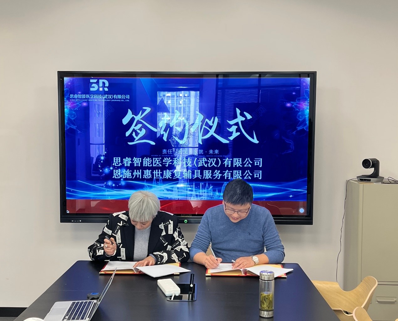 在考察组代表愉悦地就意向产品各项性能指标和未来发展方向达成一致后,国科瑞泰(湖北)医疗科技有限公司恩施分公司总经理谭欣、恩施州惠世康复辅具服务有限公司总经理黄旭与我司正式签订了合作协议。至此本次考察活动圆满结束,我司将基于客户对思睿信任的基础上锐意进取,集结多领域资源,不断推陈出新。也希望未来与国科瑞泰(湖北)医疗科技有限公司恩施分公司、恩施州惠世康复辅具服务有限公司以及恩施州中心医院一起,推动恩施地区3D打印在医学临床领域的应用,让群众用的满意,让业务水平与服务质量更上层楼。