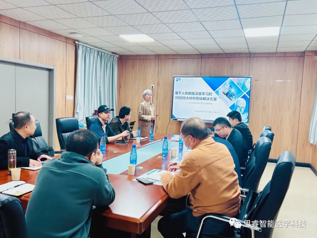 思睿公司联合创始人、营销总监任芙蓉首先就企业概况,研发背景,目前3D打印在医学方面的应用,以及市场环境等做了讲解。在听过思睿智能大致介绍后,蔡甸区委组织部,卫健局,商务局各位领导也提出了相关技术及实施的疑问,分别从各部门相关的角度对该项目进行分析及发展预测,以极大的诚意愿意为该企业落户蔡甸做好各项服务,蔡甸区新联会承诺为企业落户无偿提供一层办公区域,并在高新技术,专精特新政策申报方面给与专业辅导 ,帮助企业做大做强。