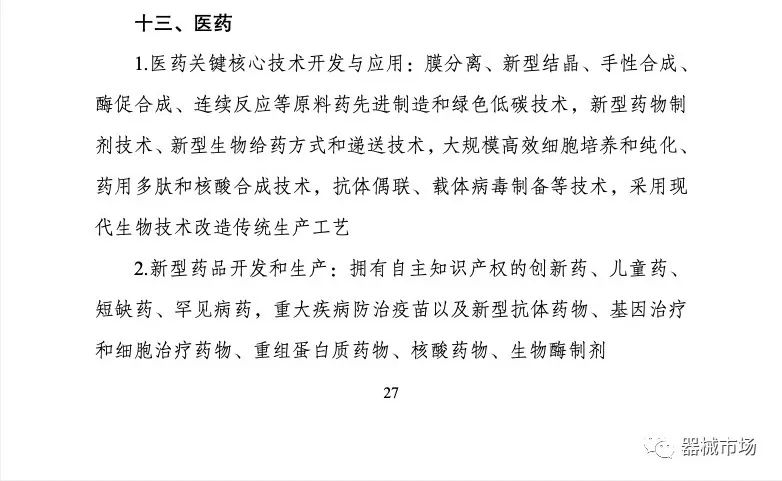 鼓励类主要是对经济社会发展有重要促进作用的技术、装备及产品。医药行业中,鼓励类有5项,其中包括关键核心技术、新型药品、高端医疗器械及中医药创新发展。高端医疗器械创新发展具体涉及:新型基因、蛋白和细胞诊断设备,新型医用诊断设备和试剂,高性能医学影像设备,体外膜肺氧合机等急危重症生命支持设备,人工智能辅助医疗设备,移动与远程诊疗设备,腔镜手术机器人等高端外科设备,高端康复辅助器具,脑起搏器、全降解血管支架等高端植入介入产品,生物医用材料、增材制造技术开发与应用。