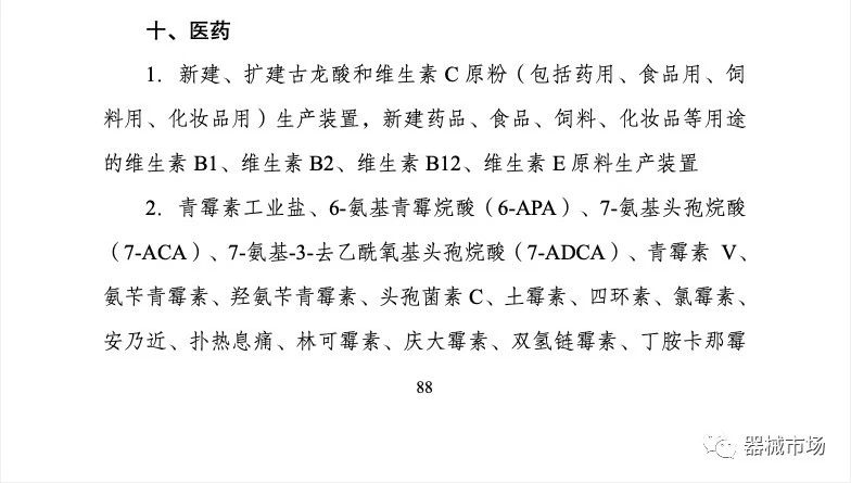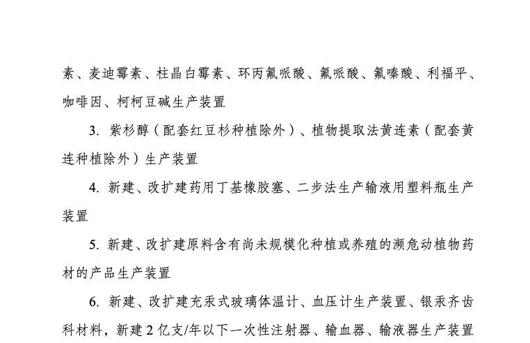 限制类主要是工艺技术落后,不符合行业准入条件和有关规定,不利于安全生产,不利于实现碳达峰碳中和目标,需要督促改造和禁止新建的生产能力、工艺技术、装备及产品。医药行业中,新建、改扩建充汞式玻璃体温计、血压计生产装置、银汞齐齿科材料,新建2亿支/年以下一次性注射器、输血器、输液器生产装置被列为限制类。