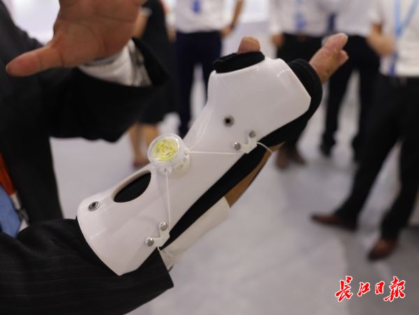 在展示柜前,该公司研发技术中心总监周华告诉长江日报记者,该设备不仅能20分钟完成疾速定做,适配人体曲线,还可根据术后恢复期间不同肿胀程度自主调节支具松紧度,并且比传统石膏轻80%,同时能进行反复拆洗。